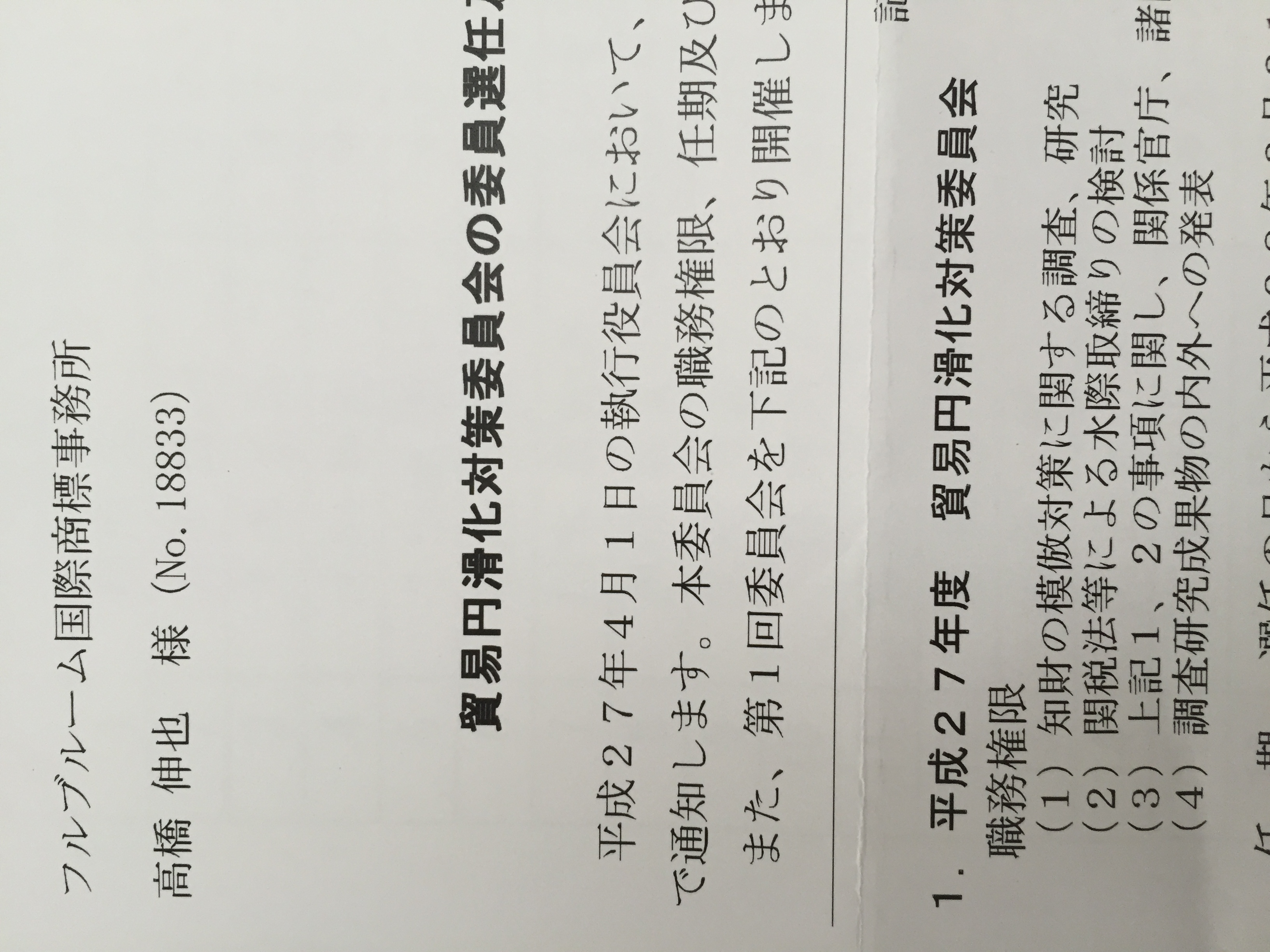 平成27年4月1日付にて、フルブルーム国際商標事務所の所長弁理士・高橋伸也は、日本弁理士会の貿易円滑化対策委員会の委員に選任されました。
